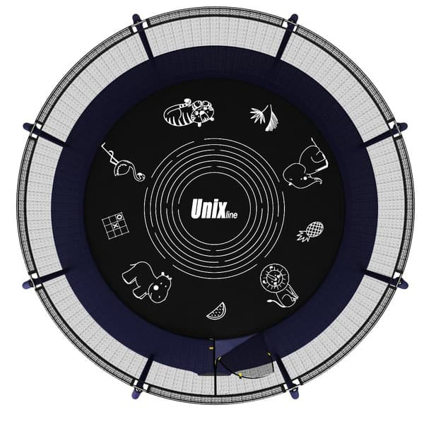 Помимо верхней защитной сетки, все батуты премиального модельного ряда UNIX line оборудованы нижней защитной сеткой, которая препятствует проникновению под прыжковое полотно батута детей, животных, а также попаданию посторонних предметов, и лестницей для удобства пользования. Так же в комплект входят специальные крепления батута к земле (колышки).