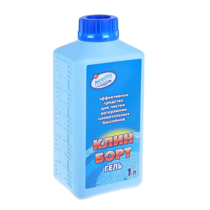 Клин борт гель - это эффективное жидкое средство для чистки ватерлини бассейна. Препарат прост в использовании. В состав: щелочь, ПАВ, комплексообразователь, спирт, консервант.