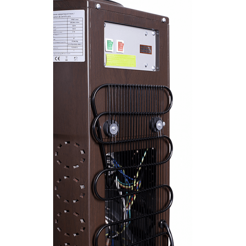 Кулер для воды HotFrost V760C wood оборудован электронным табло с температурами горячей и холодной воды, тремя краниками подачи воды . Дизайн выполнен под дерево.