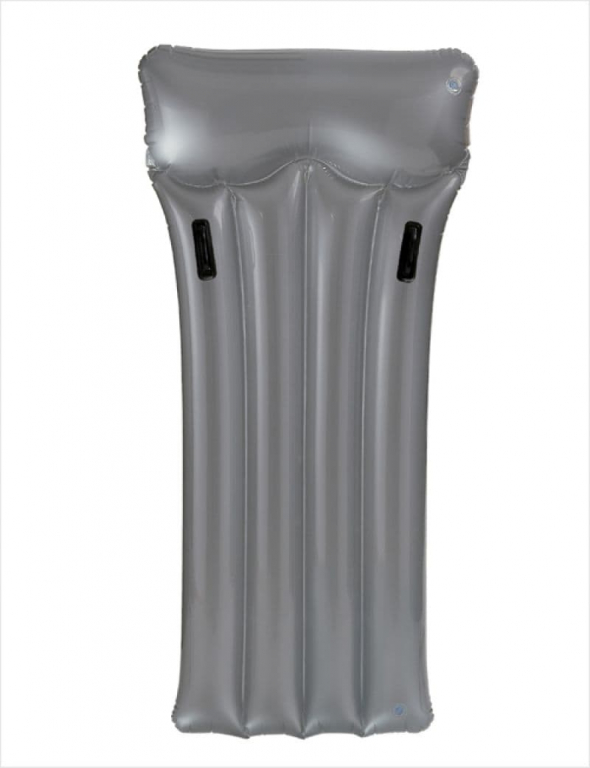 Надувной матрас серый с ручками и с подголовником выполнен из высококачественного ПВХ 025 мм. Прозрачный верх, серебренный низ. 2 воздушные камеры. Предусмотрен ремонтный набор. Данную модель можно использовать в воде любой жесткости. Матрас отлично держит пловца на воде, а подголовник позволяет занять более удобную позу. Не желателен контакт с острыми колющими и режущими предметами.