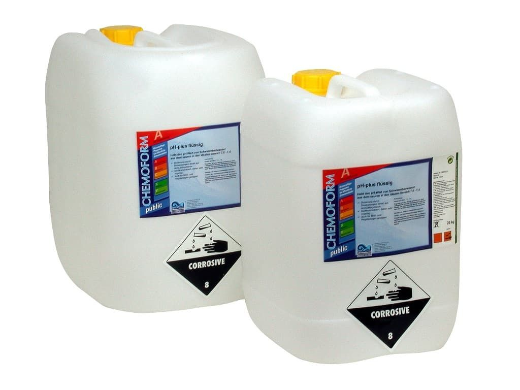 Препаратом pH-Плюс просто и удобно повысить уровень рН воды в бассейне. Средство изготовлено на основе гидрооксида натрия. Перед процедурой, следует измерить уровень рН на текущий момент, чтобы правильно рассчитать дозировку.
